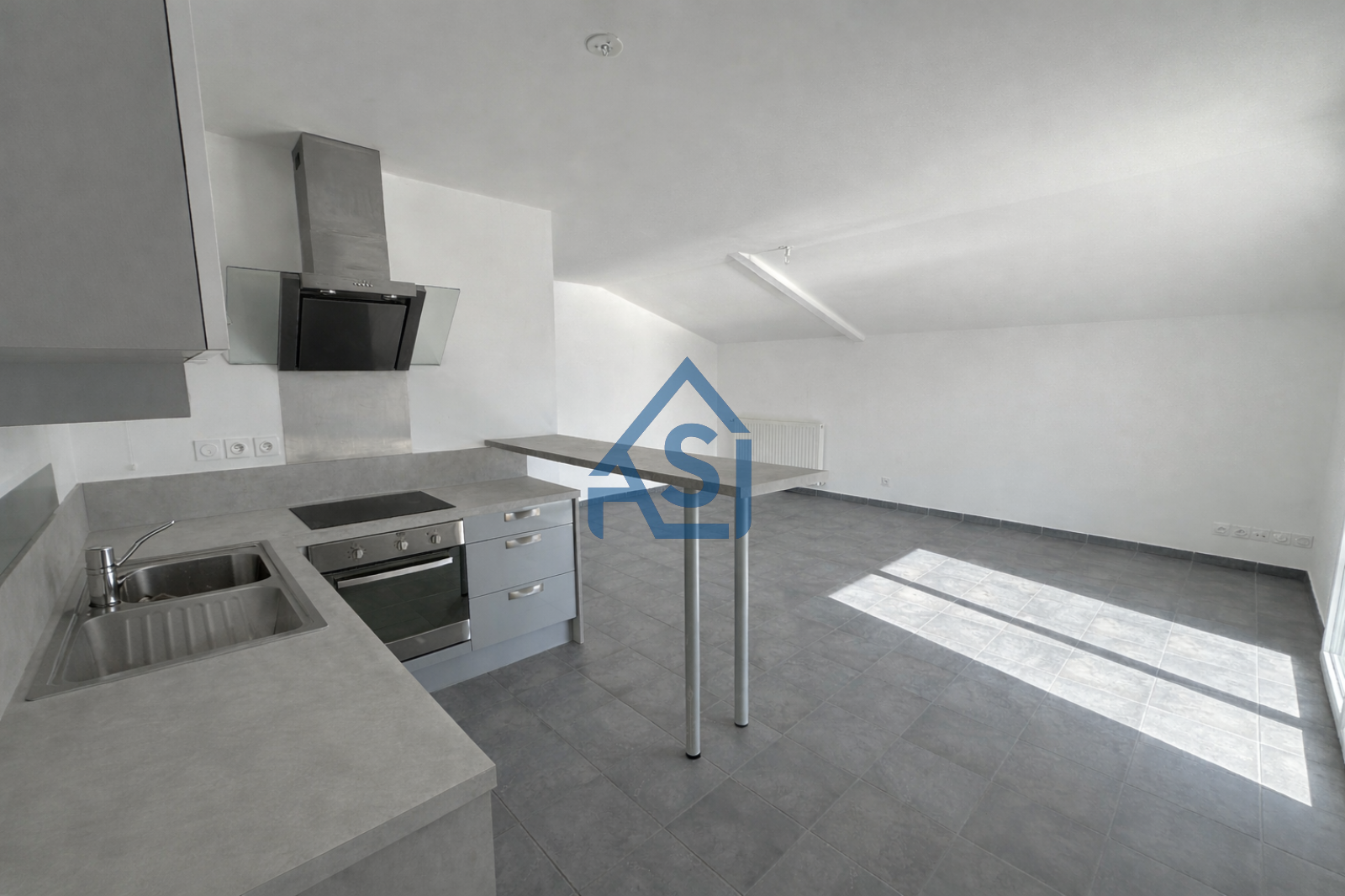 Il se compose d’un séjour avec cuisine semi-équipée, comprenant plaques de cuisson, four et hotte, s’ouvrant sur une belle terrasse exposée sud-ouest de 11,57 m², idéale pour profiter du soleil en fin de journée.